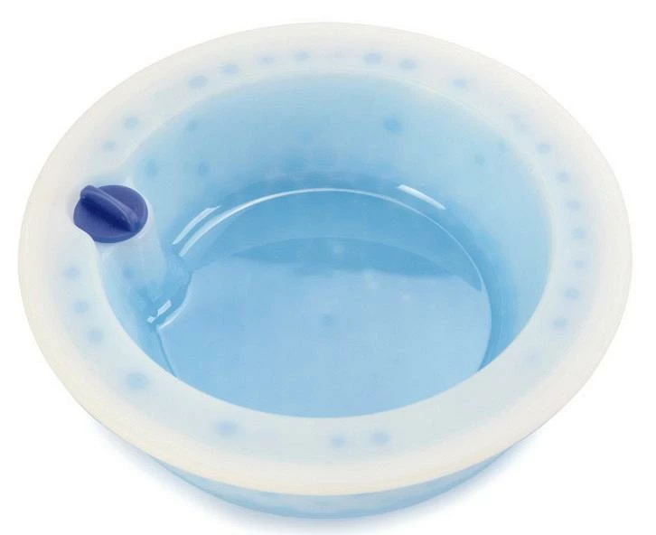 Het bakje, dat is gevuld met speciale gel balletjes, kan worden gevuld met water via het dopje aan de bovenkant en vervolgens in de vriezer geplaatst worden voor ongeveer 6 uur.