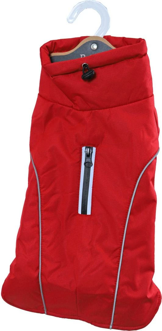 De no-nonsens jas is zeer gemakkelijk in gebruik, door middel van de klittenband sluitingen. Op de rug is een opening d.m.v. een rits om je hond op een eenvoudige manier aan te lijnen aan zijn tuig. Gemaakt van waterdichte stof, met reflecterende stiksels.