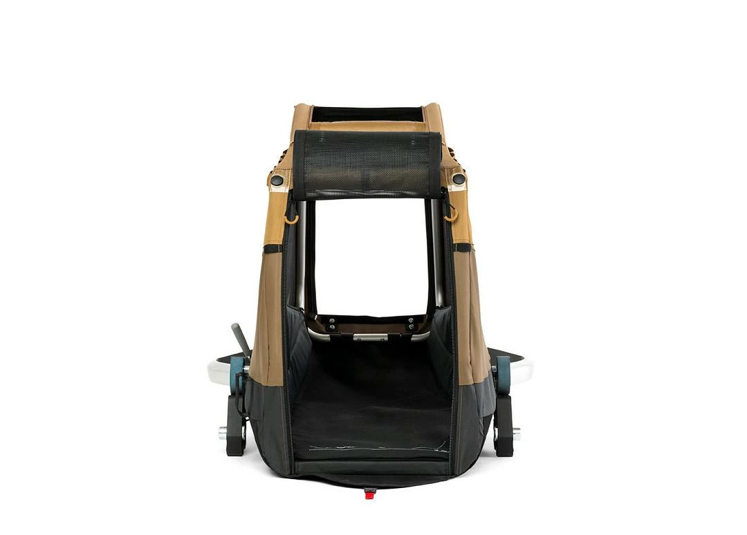 • Optimale ventilatie: de voor-, zij- en achterkant van de fietskar zijn voorzien van gaaspanelen voor een uitstekende ventilatie. Naast het zonnedak, kan ook het voorpaneel volledig worden open geritst