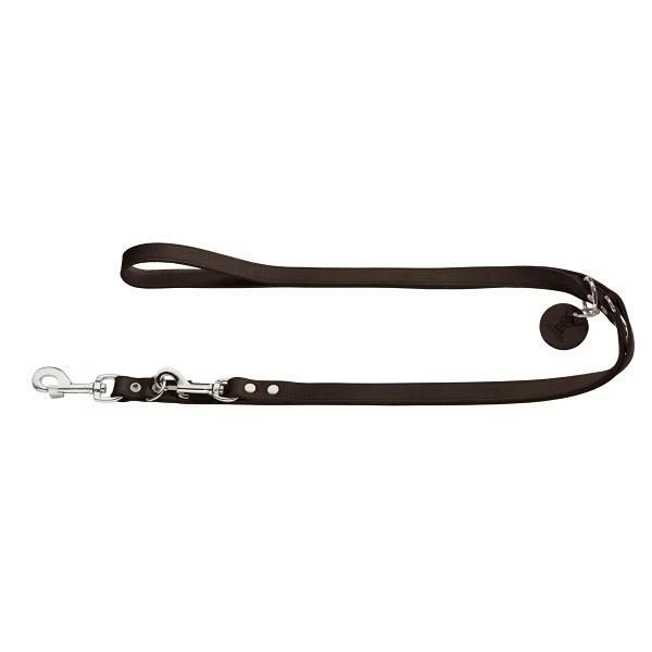 De Hunter rundleder verstelbare hondenlijn is gemaakt van zacht volnerfleer met een bijzonder hoge vetgehalte en natuurlijke bruining. De lijn is verstelbaar in drie richtingen en bestand tegen hoge trekkrachten. Daarom is deze lijn bijzonder geschikt voor hondensporten.