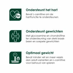 |  | Ondersteunt gewrichten Met glucosamine en chondroïtine ter ondersteuning van sterk kraakbeen en soepele gewrichten.  |