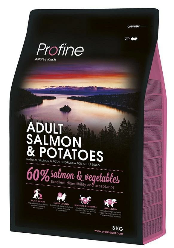 Profine Adult Salmon & Potatoes is een natuurlijke formule met zalm en aardappel voor volwassen honden.