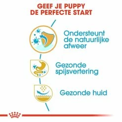 Royal Canin French Bulldog ondersteunt de spijsvertering en een gunstige darmflora wat de kwaliteit van de ontlasting helpt te verbeteren en ondersteunt de natuurlijke weerstand van uw pup. De unieke vorm en het formaat van de brok helpt je Franse Bulldog pup om de brok makkelijk op te pakken en te kauwen.