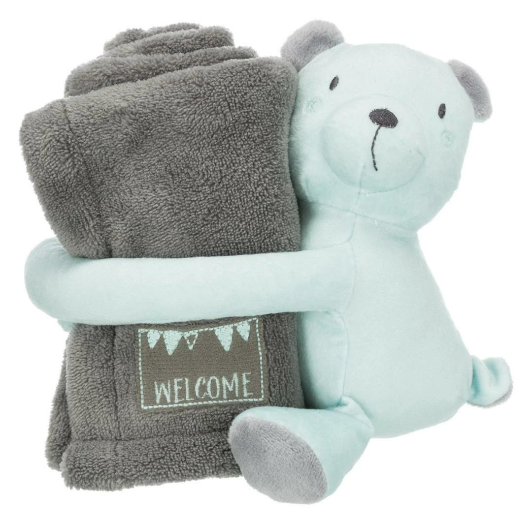 TRIXIE knuffelset hondendeken Beer Puppy/Junior is een leuke set voor jouw puppy of junior hond. Met deze set kan jouw hond urenlang knuffelen. De deken is compact op te rollen en kan tussen de armen van de knuffel worden opgeborgen.