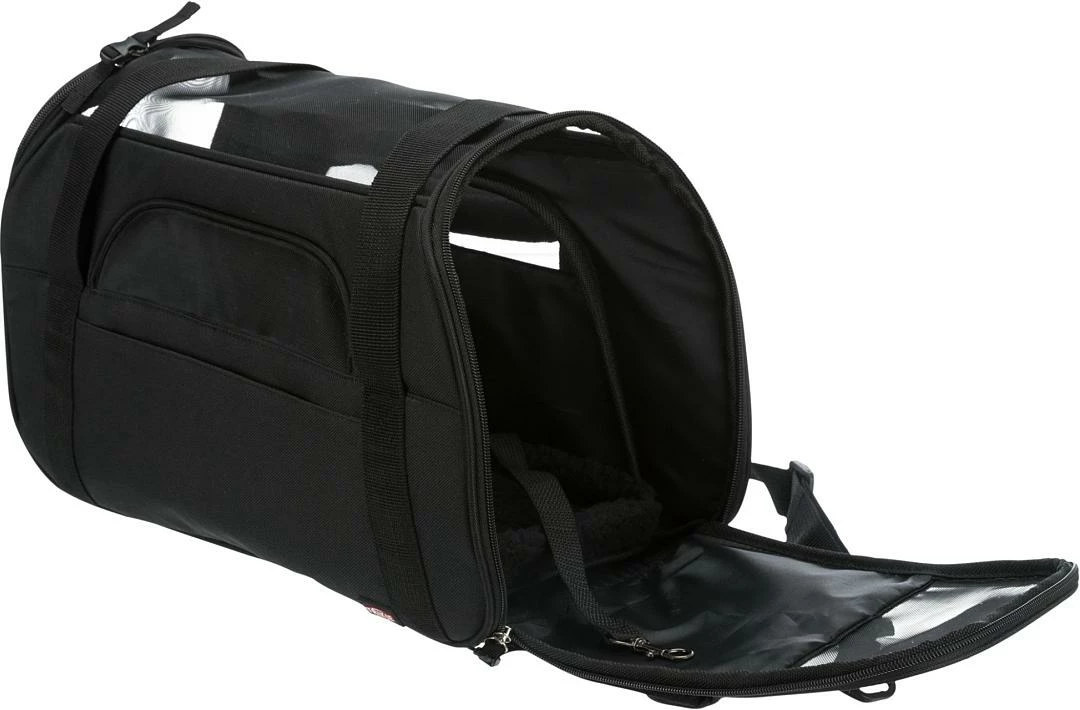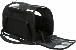 De tas is aan de voorkant te openen en de ritssluitingen zijn beveiligd met gespen die het ongewenst openen van de tas verhinderen. Extra fijnmazig gaas beschermt je dier tegen insecten en de korthouder zorgt ervoor dat deze niet per ongeluk uit de tas kan springen. Door de uitneembare, gevoerde bodemplaat is het bovendien comfortabel reizen voor jouw viervoeter. Een zeer complete, veilige tas die comfortabel is voor mens en dier!